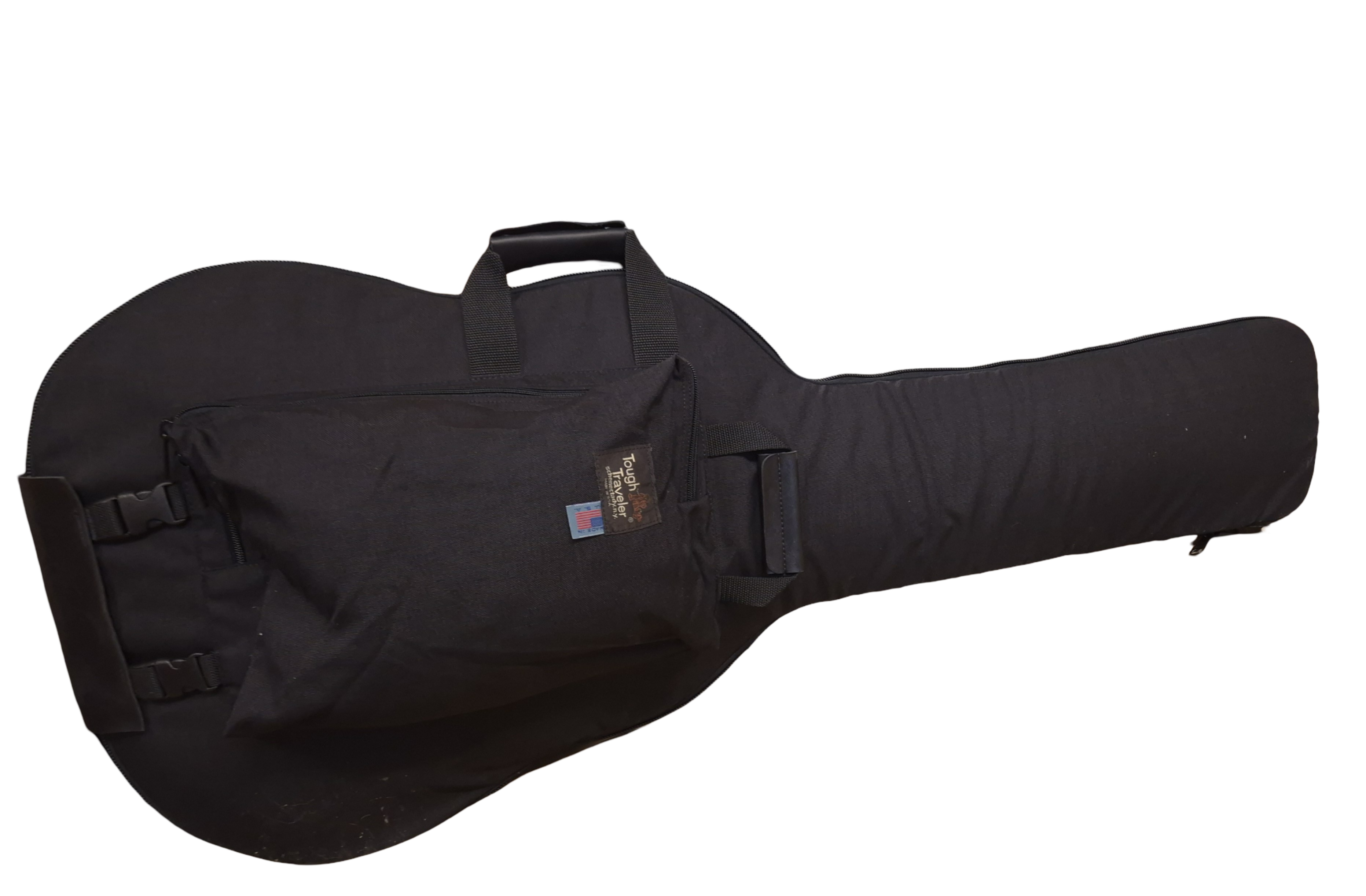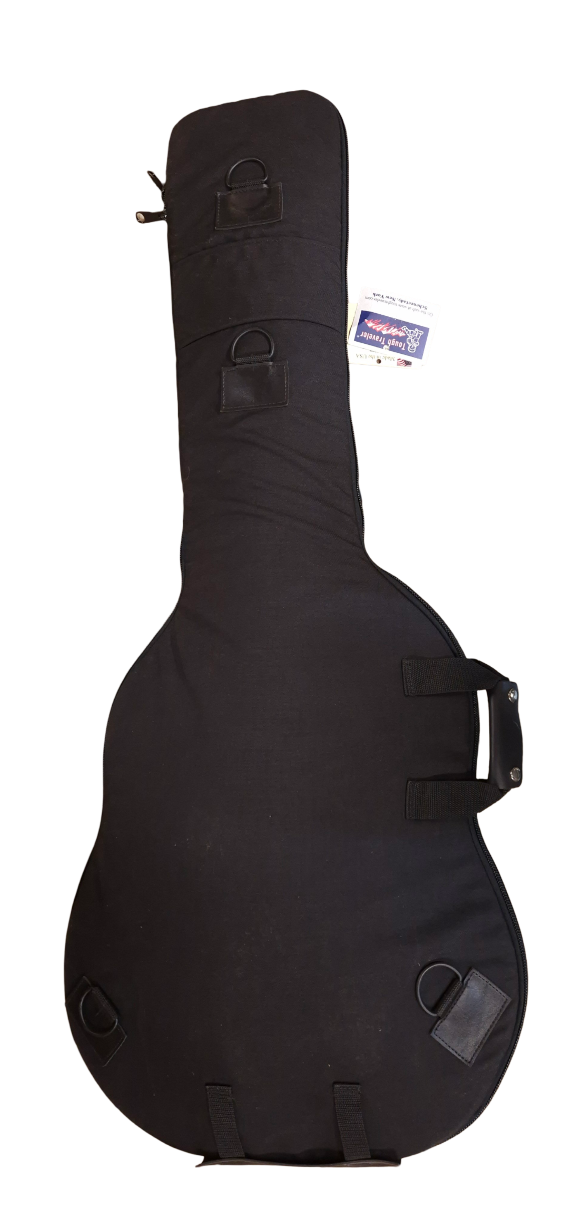 The Semi-hollow body guitar bag is a fully padded carrier designed to protect semi-hollowbody guitars. Featuring a padded shoulder/back strap with right or left configuration, hook for hanging, and front pocket for accessories and books, this protective bag is hand-sewn in Schenectady, NY for years of reliable guitar protection.